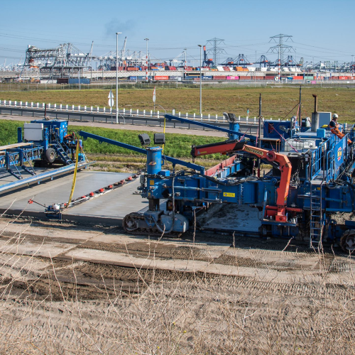 Beton is voor meerdere doeleinden te gebruiken. BKB Infra legt met een zogenaamde ‘slipformpaver’ fietspaden, rijwegen en onderbanen voor tramrails aan. Bijzonder is dat de infraspecialist de betonpaver ook inzet voor het maken van lijnconstructies, zoals opsluitbanden en voertuigkeringen. Laurens: “Wij doen al jaren aan 3D-printen. Inmiddels hebben we verschillende 3D-modellen ontwikkeld die we aan de paver hangen. Wij gooien betonmortel in de machine en aan de achterkant komt er een mooie betonnen constructie uit.”
